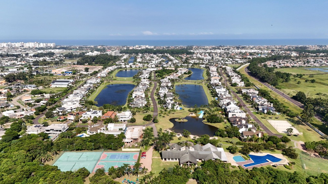 Uma das casas mais exclusivas do Litoral Norte, com uma das localizações mais desejadas da praia, condomínio Bosques de Atlântida, ao lado do roubadinhas na Avenida Central de Atlântida, casa diferenciada das demais, arquitetura contemporânea, moveis exclusivos com assinaturas, finamente decorada, são dois lotes frente leste com sol da manha, com mais de 700M² de área construída com uma das vistas mais lindas para o lago que você verá hoje, composta por cinco suítes sendo duas master uma no térreo e outra no segundo piso, ambientes 100% integrados, ar condicionado central, piso em madeira de demolição, pé direito elevado em toda casa, cozinha auxiliar e lavanderia separada, espaço gourmet interno com churrasqueira e parrilla, duas lareiras, interna e externa, piscina térmica fechada, piscina externa aquecida de frente para o lago, academia privativa, vaga para seis carros, consulte condições de pagamento e agende agora mesmo a sua visita!