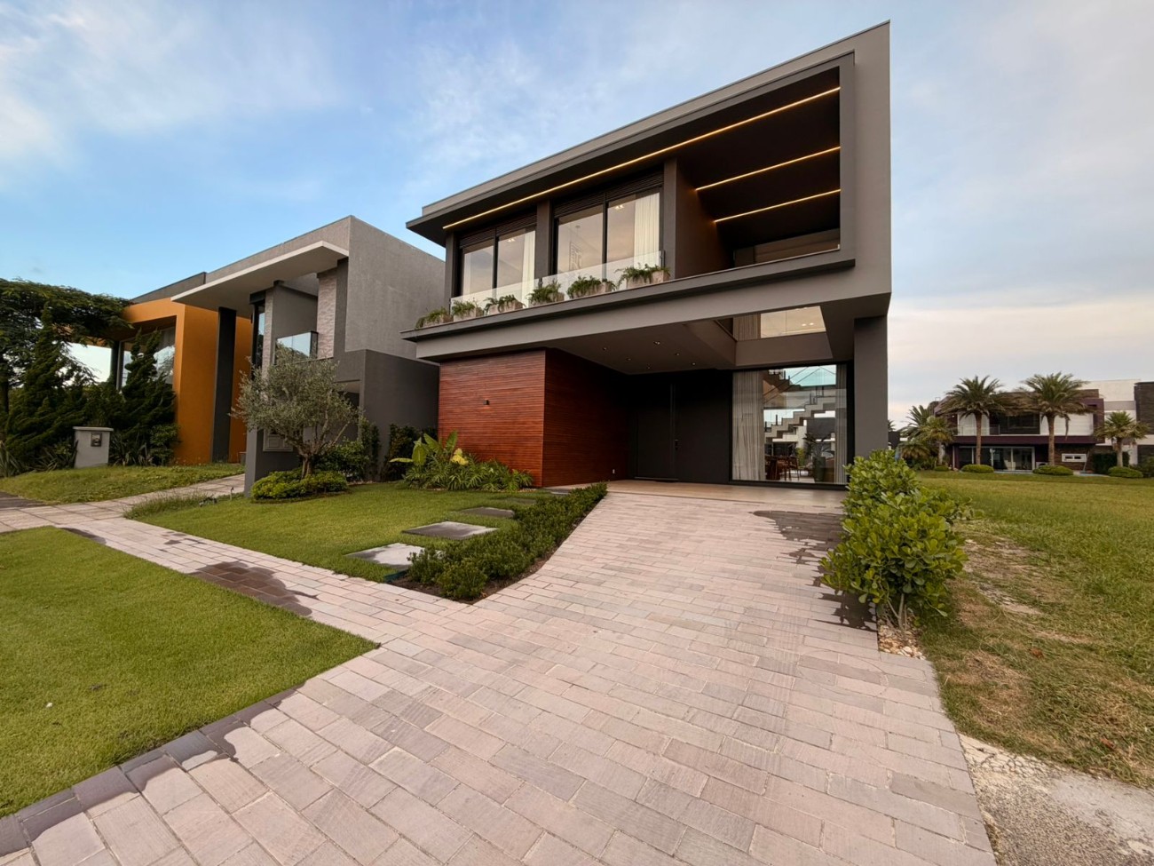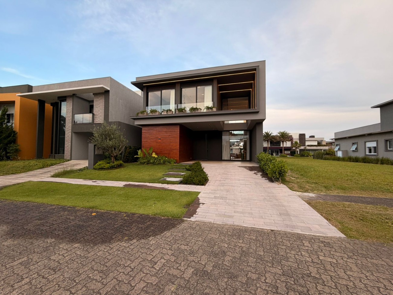 Uma das casas mais lindas à venda no Capão Ilhas resort hoje, finamente mobiliada e decorada, lote com 328M² beira lago com excelente posição solar e próximo ao clube e infraestrutura central, são 295M² de área construída e bem distribuída em cinco suítes independentes mais lavabo, sendo uma suíte master com closet e hidromassagem, e uma suíte térrea, elevador digital, ambientes 100% integrados, cozinha com bancada de apoio, espaço gourmet com churrasqueira rotativa e bifeteira, chopeira, lavanderia separada, área externa de lazer com piscina de concreto com prainha de frente para o lago, esquadrias em PVC pretas, persianas automatizadas, totalmente climatizada e pronta para uso imediato, consulte condições especiais de pagamento e agende agora mesmo a sua visita.
