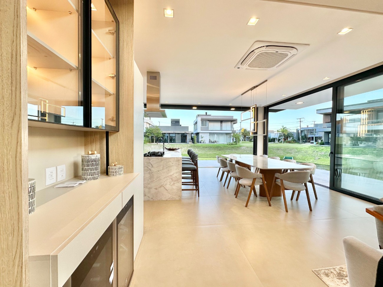 Casa espetacular, localização privilegiada sendo lateral e fundos para o lago, arquitetura moderna e imponente, casa composta por cinco suítes independentes mais lavabo, amplo living com pé direito duplo, cozinha estilo americana com lavanderia separada, área externa de lazer com piscina e paisagismo, área coberta para dois veículos e muito mais, consulte condições especiais de pagamento e agende agora mesmo a sua visita!