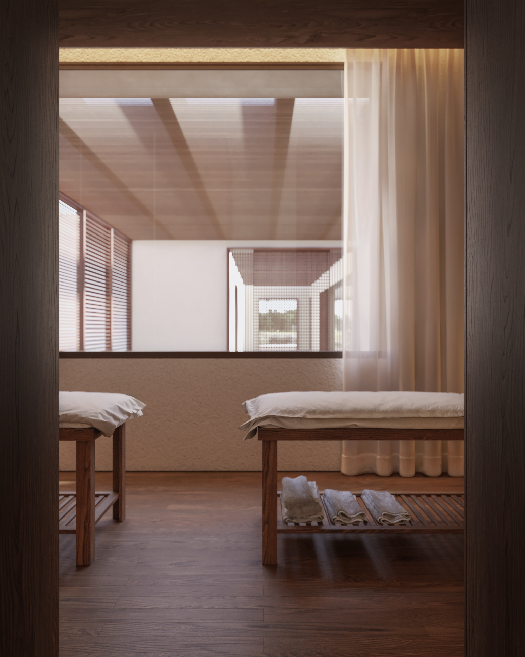 O spa é um refúgio com salas de massagem, saunas, pilates, piscina térmica com raias, academia ampla com vista para a lagoa.