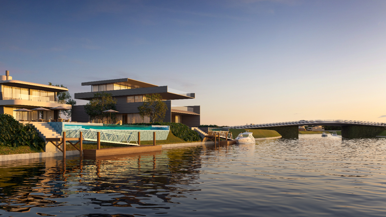Nos números, a exclusividade se confirma. São 367 lotes, com 37% de taxa de ocupação, terrenos que chegam a 1.345 m² e uma escala de água que muda o patamar do que se entende por condomínio náutico na região. São 113.750 m² de lagos navegáveis.