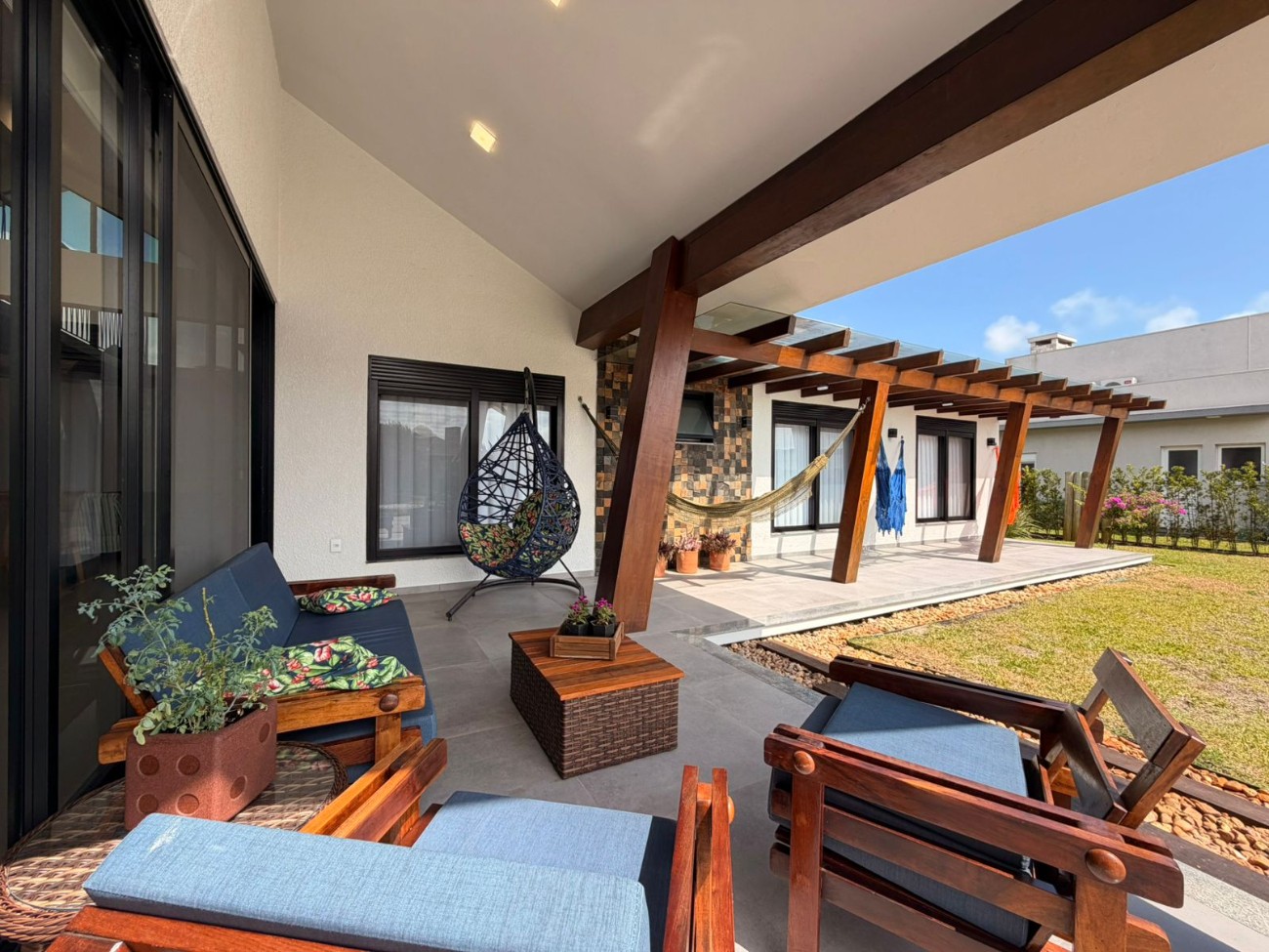 Excelente opção de casa pronta para uso imediato, localizada no Condomínio fechado Lagoa do Passo em Atlântida Sul, arquitetura clássica, telhado aparente, casa toda avarandada, composta por quatro dormitórios sendo uma suíte com closet, mais dois banheiros sociais, amplo living com pé direito duplo, mezanino com tela de descanso suspensa, cozinha americana com espaço gourmet integrado, área coberta para dois veículos, esquadrias em alumínio com vidro laminado duplo, totalmente mobiliada e decorada, sistema de energia solar, muito pátio em torno da casa com paisagismo pronto, consulte condições especiais de pagamento.