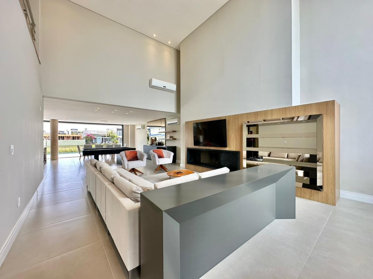 Excelente casa à venda no Capão Ilhas Resort, muito bem construída e distribuída em quatro amplos dormitórios sendo duas suítes mais banheiro social e lavabo, ambientes 100% integrados, sala de estar com pé direito duplo, cozinha com bancada de apoio, área externa com piscina de frente para o lago, muito bem localizada a poucos metros da infra e clube central, casa frente Norte (sol da manhã) totalmente mobiliada e equipada, pronta para uso imediato, parcelamento direto em até 60X, agende agora mesmo a sua visita!