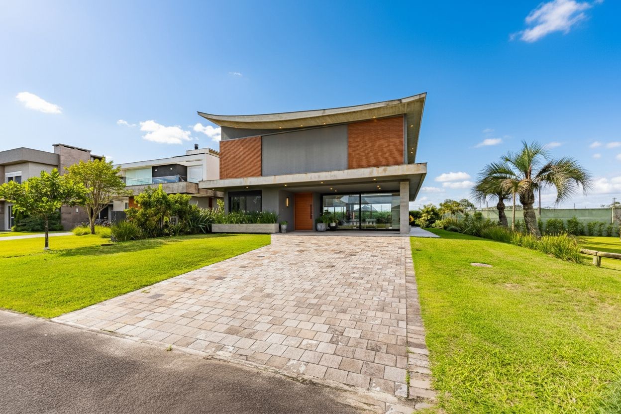 Excelente sobrado à venda no condomínio Villaggio de Atlântida, muito bem construído e distribuído em 306M² de área, composto por cinco suítes mais lavabo, ambientes 100% integrados, amplo living com ambientes 100% integrados, cozinha americana com bancada de apoio, área externa com piscina de concreto e prainha, área coberta para dois veículos, arquitetura moderna, laje inclinada em concreto aparente e muito mais, consulte condições de pagamentos e verifique a disponibilidade.